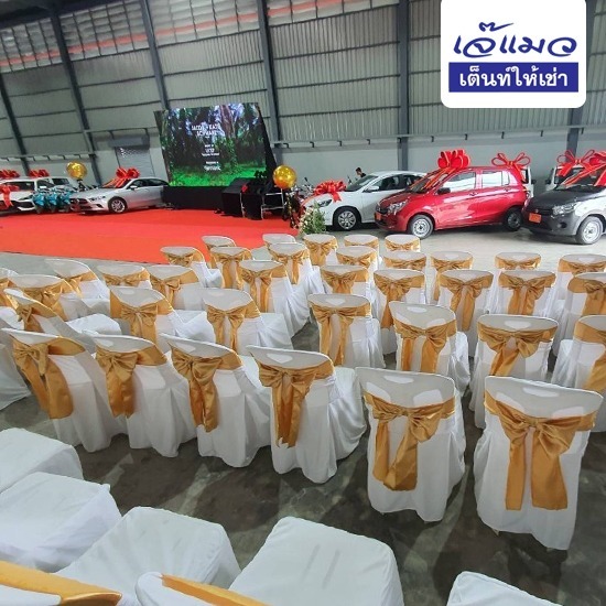 ให้เช่าเก้าอี้พลาสติก เก้าอี้คลุมผ้าผูกโบว์ เก้าอี้บุนวม เก้าอี้พร้อมผ้าคลุมสีขาว เก้าอี้พลาสติกคลุมผ้าและผูกโบว์ เช่าโต๊ะจีนคลุมผ้า เช่าโต๊ะพับขาวคลุมผ้าสำหรับงานเลี้ยงบุฟเฟ่ต์ เช่าชุดโต๊ะเก้าอี้เพื่อจัดงานพิธี จัดงานอีเว้นท์ จัดงานบุญ จัดงานกลางแจ้ง จัดงานในหอประชุม